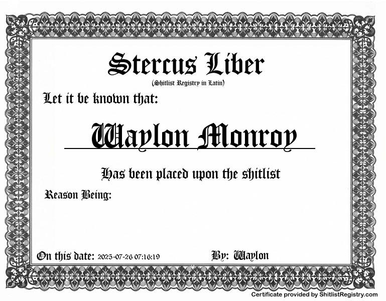 Waylon Monroy is on The Shitlist :: Shitlist Registry